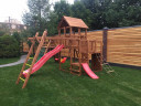 Подходит как для самых маленьких, так и для подростков. Здесь есть качели и мостик, скалодром, башня и корма корабля, горка и турник с большим рукоходом!