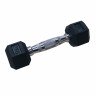 Гантель обрезиненная с хромированной ручкой. Вес гантели 4 кг, в комплекте 2 штуки (пара). Ручка с насечками для предотвращения скольжения. Гексагональная гантель – обрезиненная модель удобной конструкции. Гантель имеет много граней и не катается по полу. Обрезиненная поверхность не царапает пол при ударе. Гантели используются в фитнесе, лечебной физкультуре, бодибилдинге и других спортивных тренировках. Внутренний материал сталь Внешний материал резина Материал хвата сталь Длина хвата 12,5 см  Диаметр хвата 2,8 см  Вес гантели (1 шт) 4 кг  Размер упаковки (2 шт / комплект)   Объем упаковки          Вес брутто   Бренд  DFC  Страна производства  Китай  Гарантия  12 месяцев