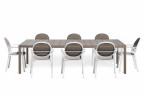 Комплект представлен 8 стульями Nardi NET в сочетании с раздвижным столом Rio