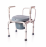 Кресло-стул с санитарным оснащением пассивного типа. Благодаря специальной конструкции рамы данное кресло-стул можно использовать в стандартных туалетных комнатах. Эта модель оснащена четырьмя самоориентирующимися колесами малого диаметра и откидными подлокотниками.